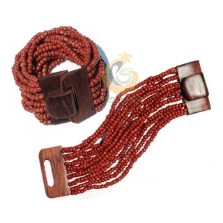 Gelang Bali Etnik Merah 14 Helai Manik Dengan Gesper Kayu . Sumber Gambar : shopee.co.id