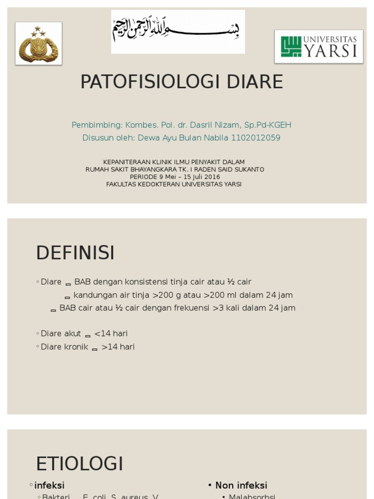 patofisiologi diare Free download as Powerpoint Presentation ppt PDF File pdf Text File txt or view presentation slides online Diarrhea
